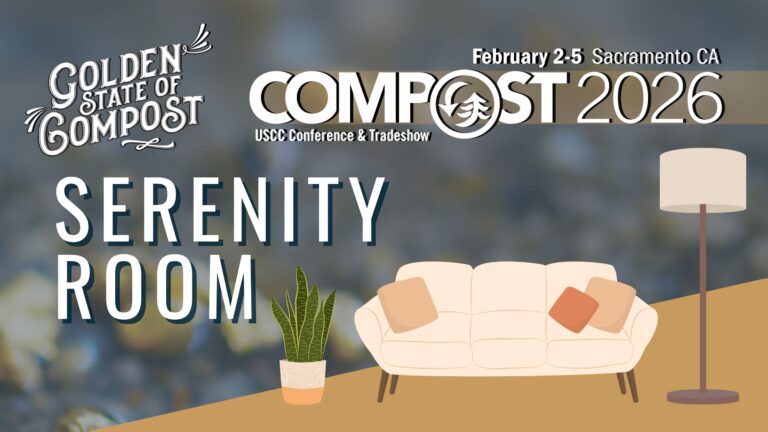 COMPOST2026 in Sacramento will feature the Serenity Room: a quiet space for conference attendees. This room is designed to be a low-sensory retreat amidst the excitement of COMPOST2026. This is a peaceful place to take a break, decompress, or quietly catch up on emails. Whether you need a few minutes to rest your eyes, breathe deeply, or step away from the conference buzz, the Serenity Room is here for you.