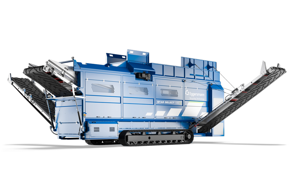 The Eggersmann S 60 three-fraction star screen is able to screen compost, mulch, waste wood and wood chips with a production of up to 400 cy/h. It comes standard with cleaning elements and the industry leading QuickChange screening shafts. The unique SplitSpeed fines deck with its 5 independent electric motors allows for a wide variety of different screening sizes. The S 60 is available as diesel over electric or 100 % electrically driven.